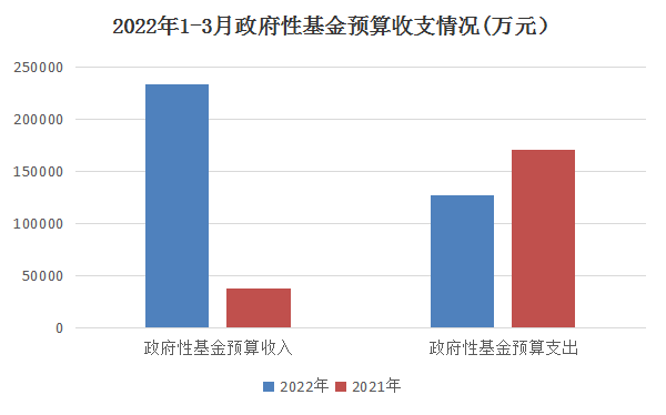 索引号: 00001434-9/2022-00037 发布机构: 区财政局 发文日期: 2022年04月07日 主题分类: 财政收支 关键词: 嘉定区2022年3月政府性基金预算收支情况 来源:区财政局 发布时间:2022-04-07 浏览次数: 次 【字体:小 大】 一、政府性基金预算收入情况2022年1-3月,政府性基金预算收入232988万元,同比增长517.1%。二、政府性基金预算支出情况2022年1-3月,政府性基金预算支出126714万元,同比下降25.6%。 分享到: